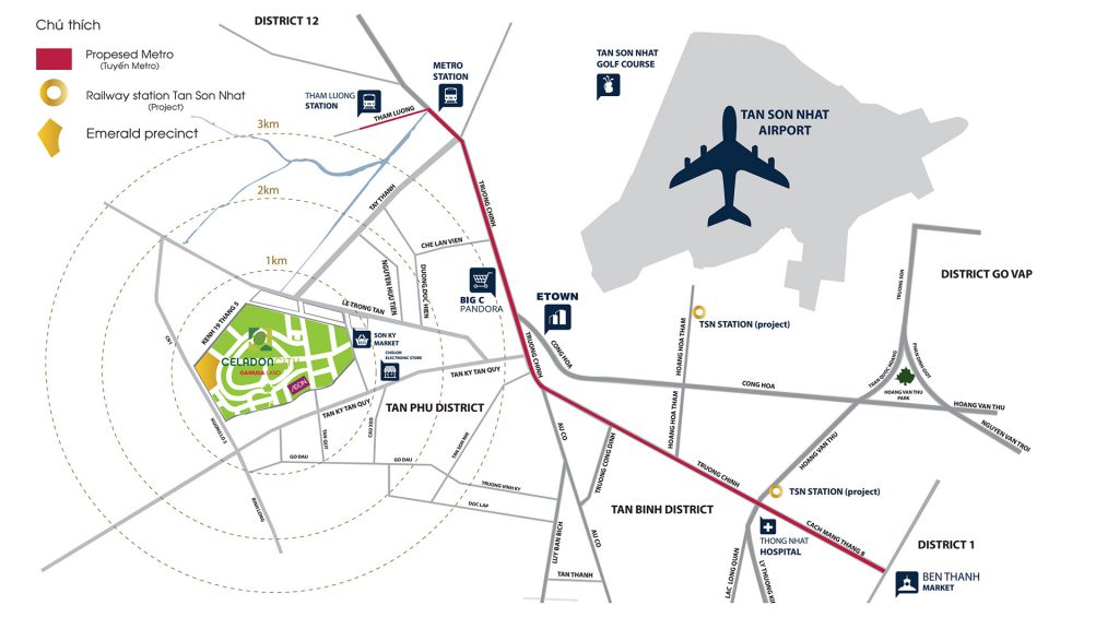 Tọa lạc tại vị trí đắc địa ở trung tâm quận Tân Phú, Celadon City là cửa ngõ giao thông huyết mạch kết nối với nhiều tuyến đường trọng điểm như Lê Trọng Tấn, Tân Kỳ Tân Quý, Cộng Hoà, Trường Chinh…đặc biệt là hệ thống tàu điện ngầm tương lai