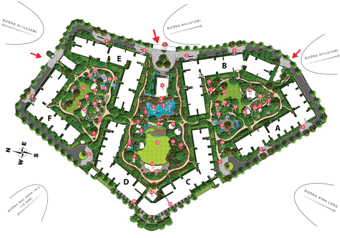 Công viên trung tâm Central Park được thiết kế như khu vườn đầy ánh sáng tạo với trên 50 tiện ích : Hồ bơi sinh thái, Đảo thiên đường trẻ thơ, Khu cafe ngoài trời, Phố BBQ, Đồng cỏ xanh, các khu Gym ngoài trời…